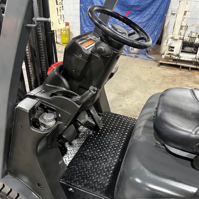 5000lbs Capacity โ Triple Mast โ 189โณ Lift Height โ 83โณ Lowered Mast Height โ Cushion Tires โ LP Gas โ Sideshift โ 42โณ Forks โ 9103 Hours