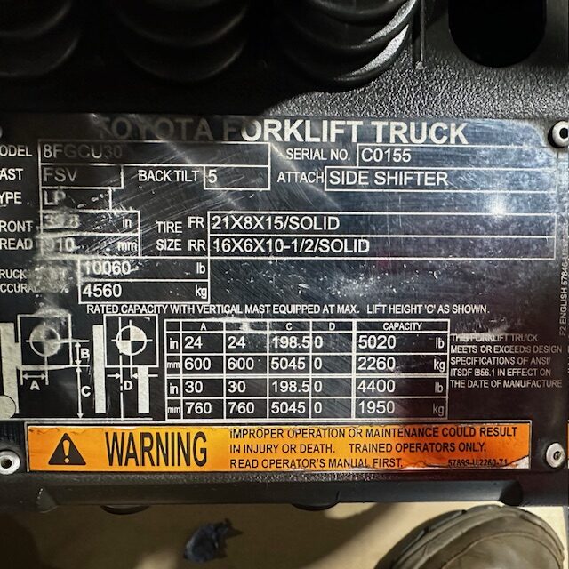 Used Toyota 8FGCU30 Forklift For Sale