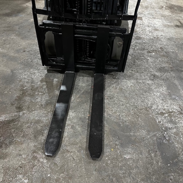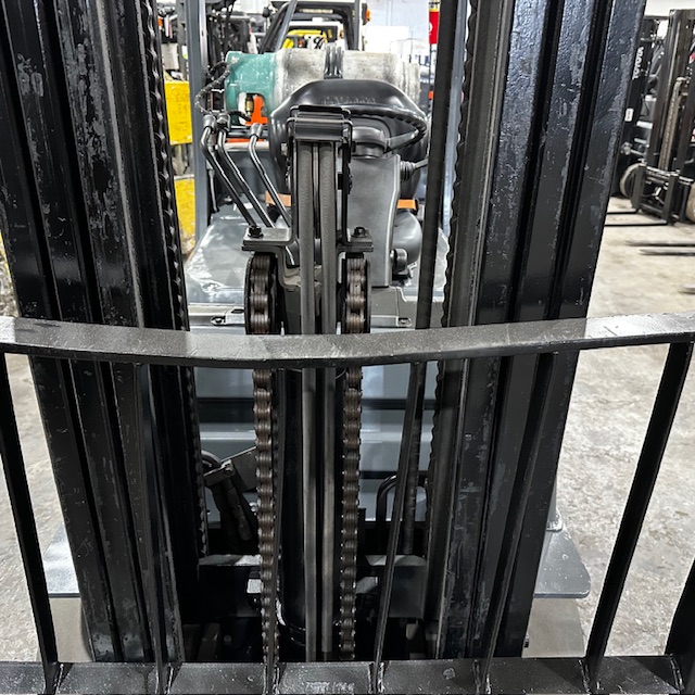 6000lbs Capacity – Triple Mast – 199″ Lift Height – 93″ Lowered Mast Height – New Cushion Tires – LP Gas – Sideshift – 42″ Forks – 4452 Hours