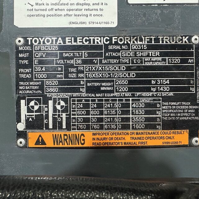 Toyota 8FBCU25 Used Electric Forklift for Sale