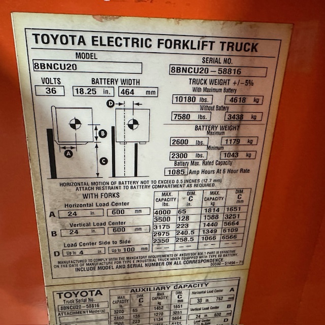 Toyota 8BNCU20 Used Forklift For Sale